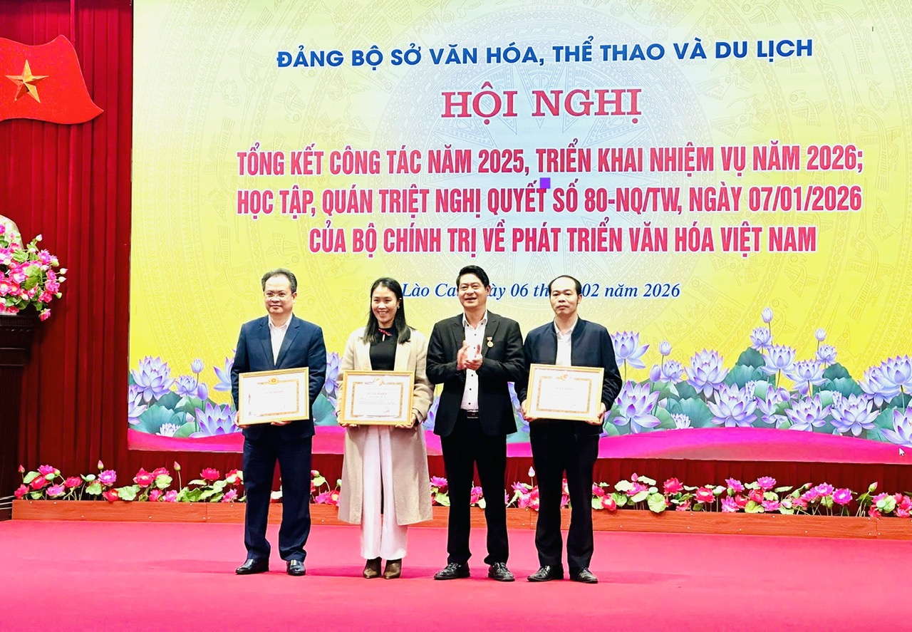 Cùng dịp này, Đảng bộ Sở Văn hóa, Thể thao và Du lịch khen thưởng 02 tập thể “Hoàn thành xuất sắc nhiệm vụ” tiêu biểu năm 2025, tặng 01 giấy khen cho cá nhân có thành tích xuất sắc trong cuộc thi Chính luận bảo vệ nền tảng tư tưởng của Đảng năm 2025.