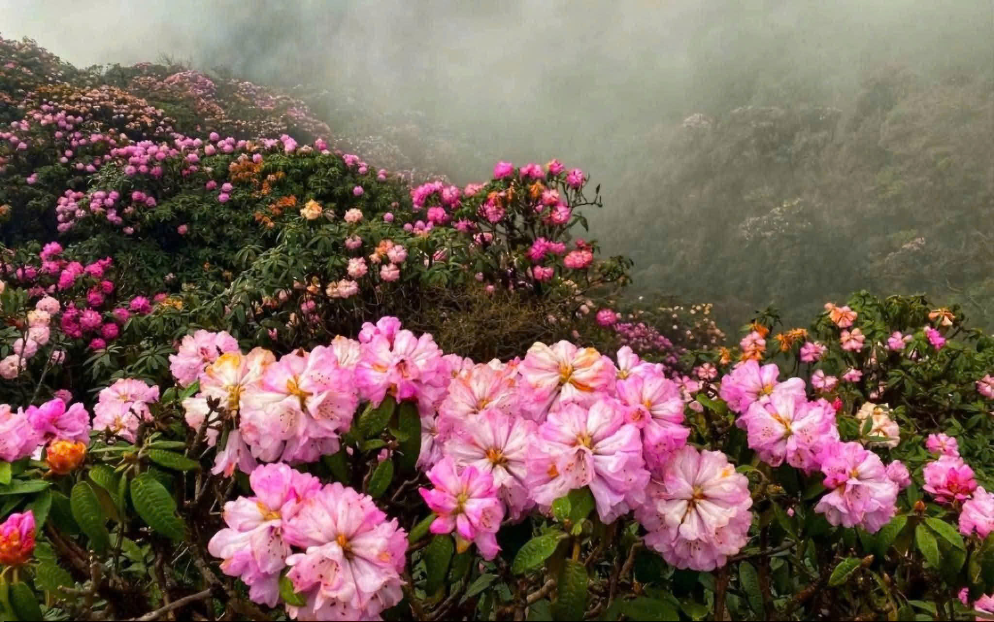 Sắc hoa đỗ quyên nhuộm hồng các sườn núi tạo nên bức tranh sinh thái rực rỡ và khẳng định giá trị cảnh quan độc đáo.
