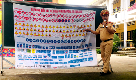 Thực hiện năm ATGT 2019 với chủ đề “An toàn giao thông cho hành khách và người đi mô tô, xe máy”, lực lượng Cảnh sát Giao thông tỉnh, thành phố phối hợp với các trường học tổ chức các buổi ngoại khóa, lồng ghép tuyên truyền Luật Giao thông đường bộ nhằm giúp các học sinh hiểu và nâng cao ý thức chấp hành Luật Giao thông đường bộ khi tham gia giao thông. Ngay từ đầu năm học mới, Công an thành phố, các huyện cùng với ban giám hiệu các nhà trường đã yêu cầu cha mẹ học sinh ký cam kết và giám sát thực hiện cam kết chấp hành quy định ATGT cho học sinh, đặc biệt là phải đội mũ bảo hiểm cho trẻ em từ 6 tuổi trở lên khi đi mô tô, xe máy; phối hợp với cơ quan chức năng, chính quyền địa phương bảo đảm trật tự ATGT khu vực cổng trường học. Lực lượng công an cũng đã tổ chức các buổi tuyên truyền ngoại khóa về việc chấp hành các quy định khi tham gia giao thông. Tại các buổi học ngoại khóa này, các em học sinh đã được các cán bộ, chiến sỹ cảnh sát giao thông phổ biến về những kiến thức cơ bản khi tham gia giao thông, các hành vi bị cấm khi tham gia giao thông, nhận biết tín hiệu đèn, biển báo giao thông tại các điểm giao cắt.