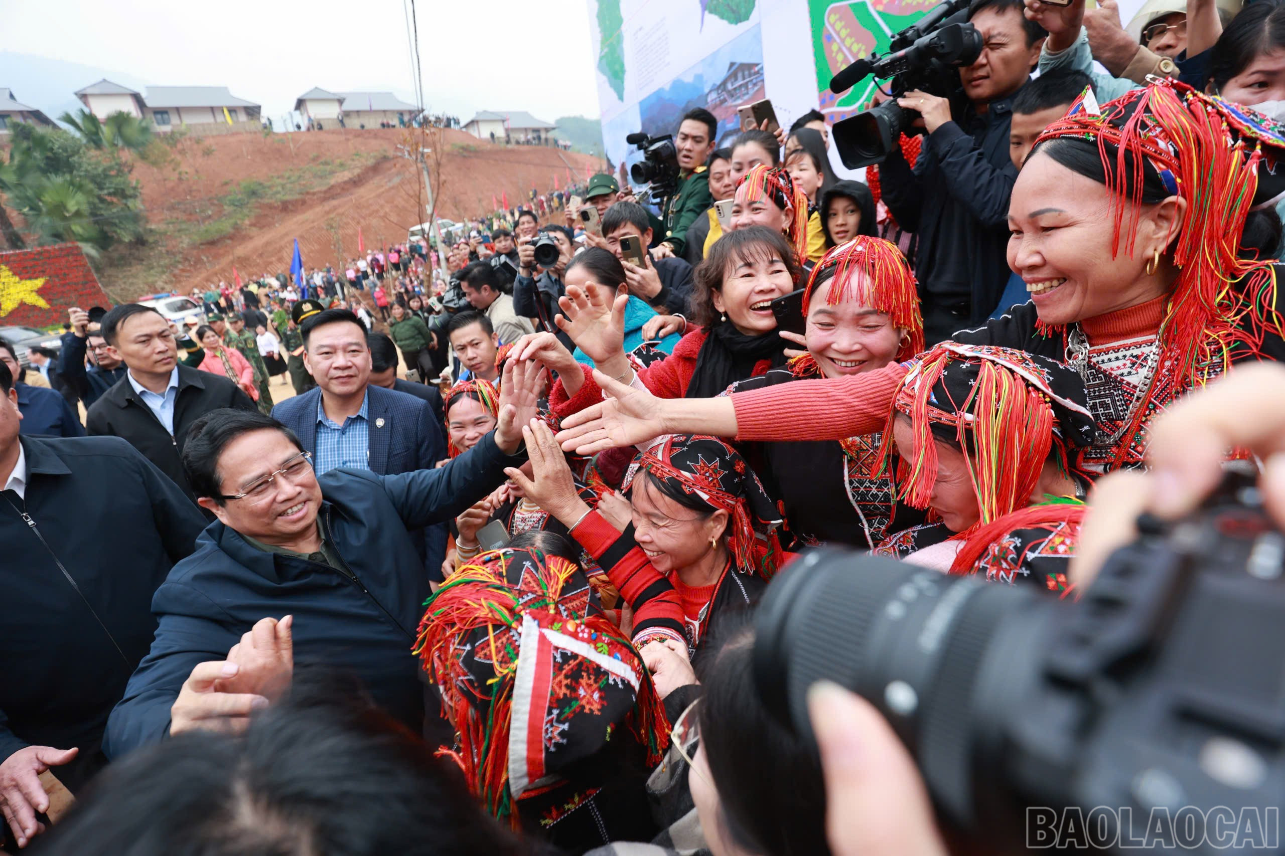 Cách đây hơn 3 tháng, hình ảnh Thủ tướng Phạm Minh Chính tay chống gậy, chân lội bùn trên cánh đồng Làng Nủ ngổn ngang do lũ quét thăm hỏi thân nhân người bị nạn, động viên cán bộ, chiến sĩ đang dầm mình trong bùn tìm kiếm nạn nhân mất tích đã làm lay động biết bao trái tim người dân vùng lũ Lào Cai và đồng bào cả nước. Hôm nay, người lãnh đạo cao nhất Chính phủ lại về với Nhân dân trong niềm hân hoan tràn ngập.
