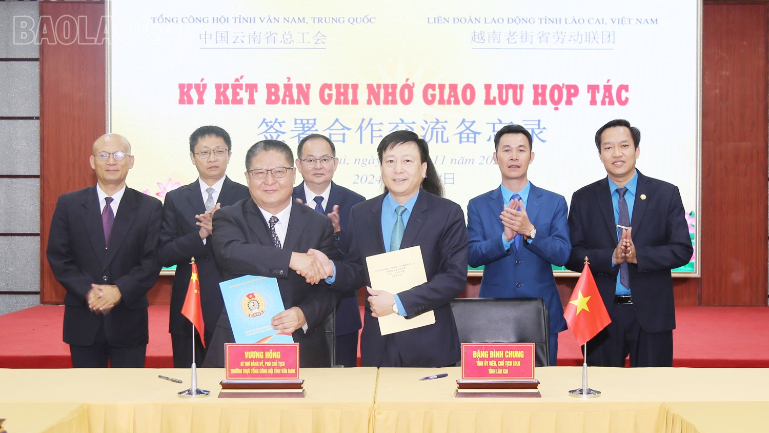 Sáng 4/11, tại tỉnh Lào Cai, Liên đoàn Lao động tỉnh Lào Cai (Việt Nam) và Tổng Công hội tỉnh Vân Nam (Trung Quốc) tổ chức hội đàm công tác công đoàn năm 2024.