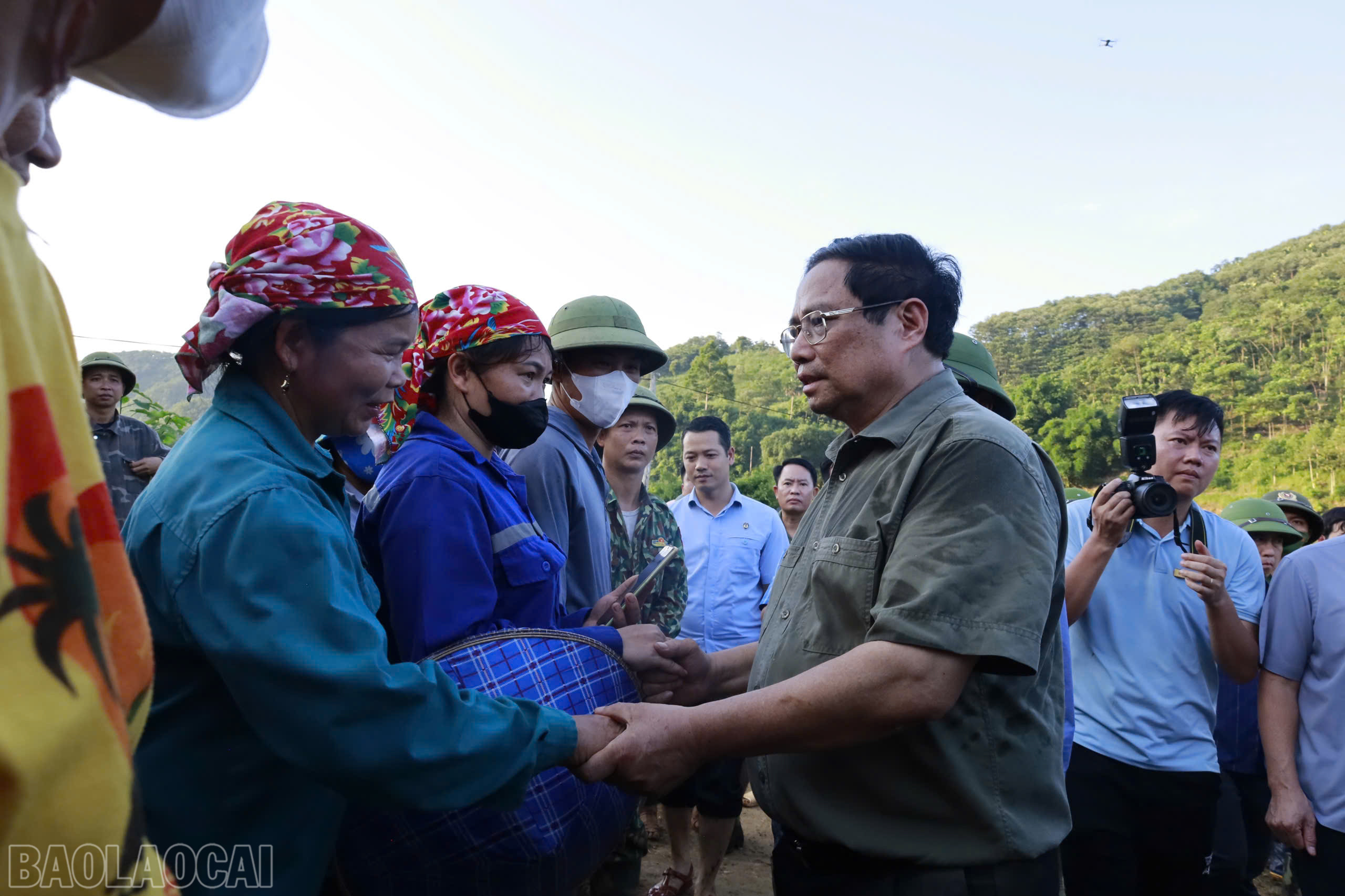 Chiều 12/9, sau khi thị sát hiện trường sạt lở đất tại thôn Làng Nủ, xã Phúc Khánh, huyện Bảo Yên, đồng chí Phạm Minh Chính, Ủy viên Bộ Chính trị, Thủ tướng Chính phủ đã làm việc với lãnh đạo tỉnh Lào Cai về công tác khắc phục hậu quả do hoàn lưu cơn bão số 3 gây ra.