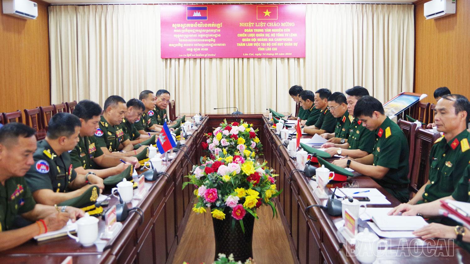 Chiều 14/8, Đoàn cán bộ Trung tâm Nghiên cứu chiến lược quân sự, Bộ Tổng Tư lệnh Quân đội Hoàng gia Campuchia do Đại tướng Kim Vanna, Giám đốc Trung tâm Nghiên cứu chiến lược quân sự làm Trưởng đoàn đã đến thăm và làm việc tại Bộ Chỉ huy Quân sự tỉnh Lào Cai.