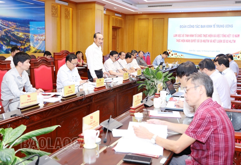 Chiều 13/6, Đoàn công tác của Ban Kinh tế Trung ương đã có buổi làm việc với Tỉnh ủy Lào Cai về tình hình tổ chức thực hiện và việc tổng kết 10 năm thực hiện Nghị quyết số 30-NQ/TW và Kết luận số 82-KL/TW.