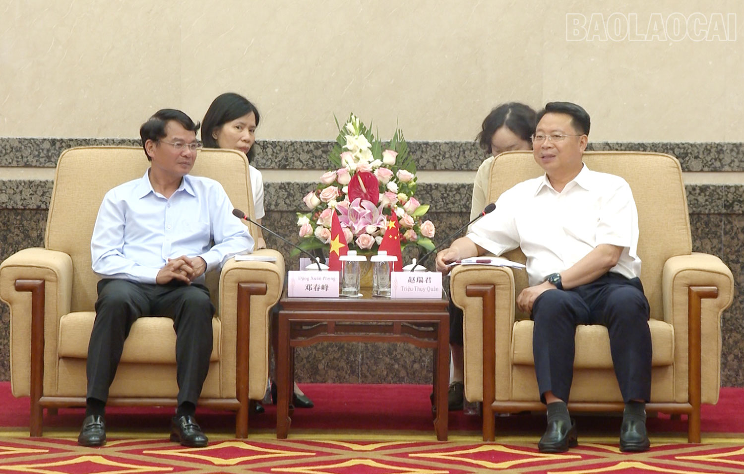 Nhân chuyến thăm và làm việc tại tỉnh Vân Nam (Trung Quốc), sáng 15/6, đồng chí Đặng Xuân Phong, Ủy viên Ban Chấp hành Trung ương Đảng, Bí thư Tỉnh ủy, Trưởng Đoàn đại biểu Quốc hội tỉnh Lào Cai (Việt Nam) đã gặp mặt xã giao đồng chí Triệu Thụy Quân, Bí thư Châu ủy châu Hồng Hà (tỉnh Vân Nam, Trung Quốc).