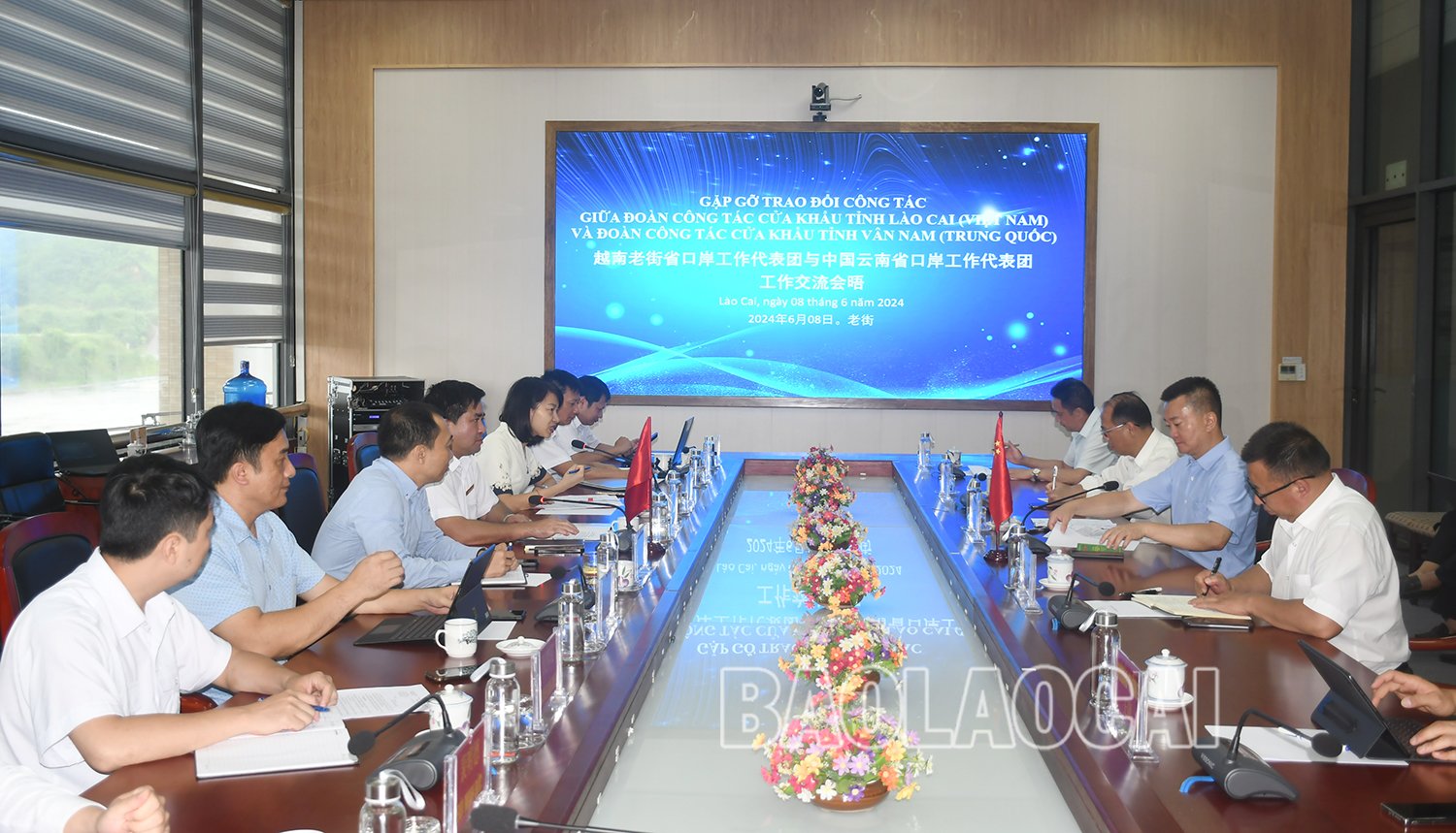 Sáng 8/6, tại Cửa khẩu Quốc tế đường bộ số II Kim Thành (Lào Cai), Đoàn công tác Cửa khẩu tỉnh Lào Cai (Việt Nam) và Đoàn công tác Cửa khẩu tỉnh Vân Nam (Trung Quốc) đã có buổi làm việc để trao đổi và đề xuất những nội dung về công tác quản lý hoạt động cửa khẩu.