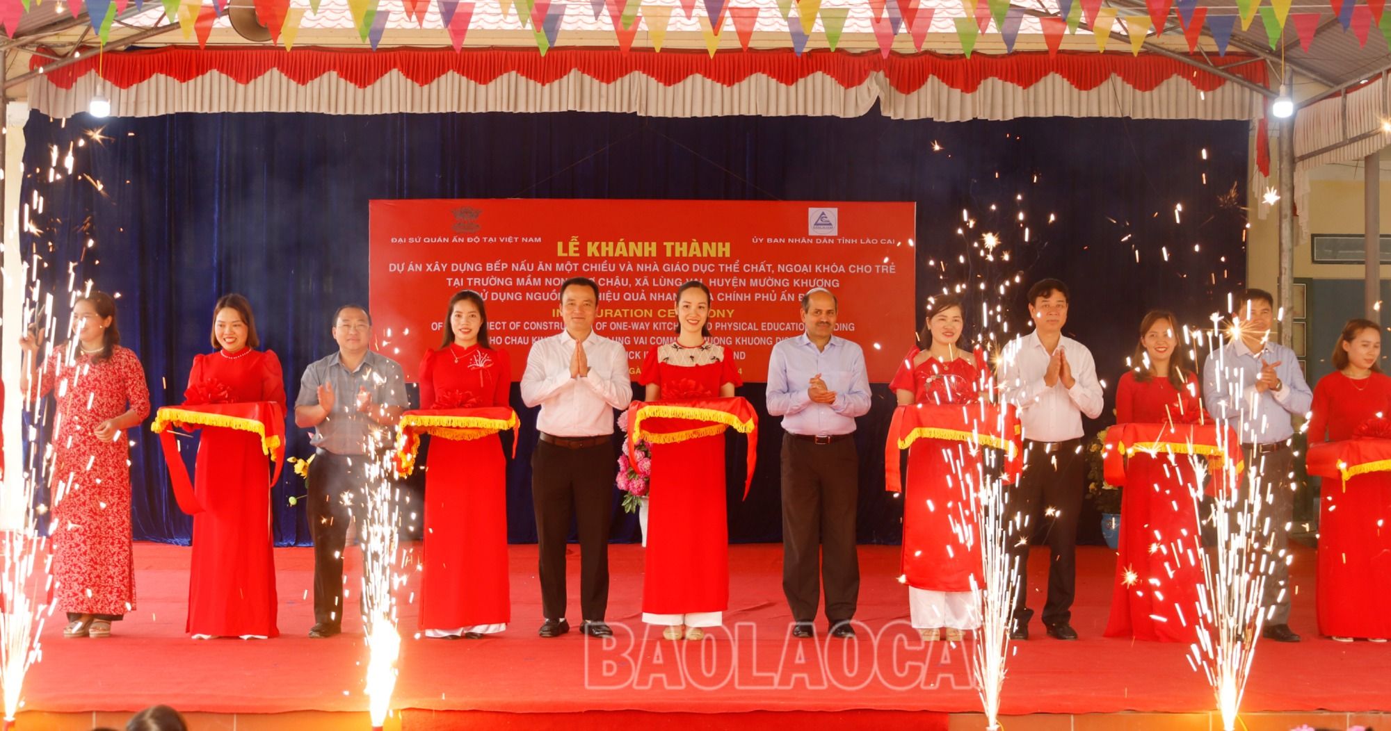 Chiều 28/3, tại Trường Mầm non Chợ Chậu, xã Lùng Vai (huyện Mường Khương), UBND tỉnh Lào Cai phối hợp với Đại sứ quán Ấn Độ tại Việt Nam tổ chức Lễ khánh thành Dự án bếp ăn một chiều và nhà giáo dục thể chất, ngoại khóa cho trẻ em.