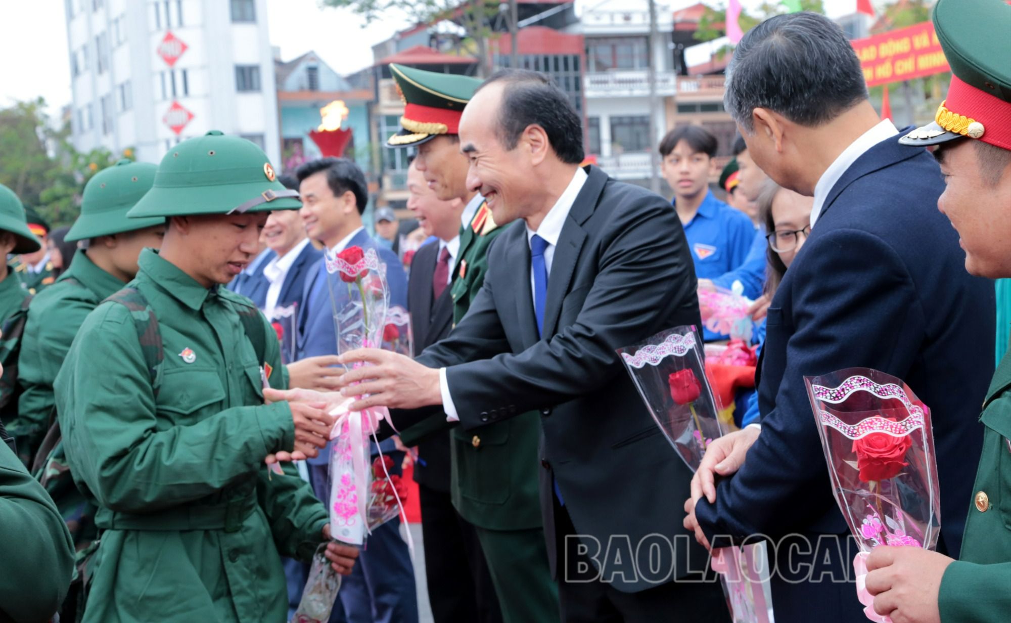 Sáng 27/2, tại sân quảng trường Trung tâm Hội nghị thành phố Lào Cai, Lễ giao, nhận quân tại thành phố Lào Cai diễn ra trong bầu không khí sôi nổi, các tân binh náo nức lên đường tòng quân.
