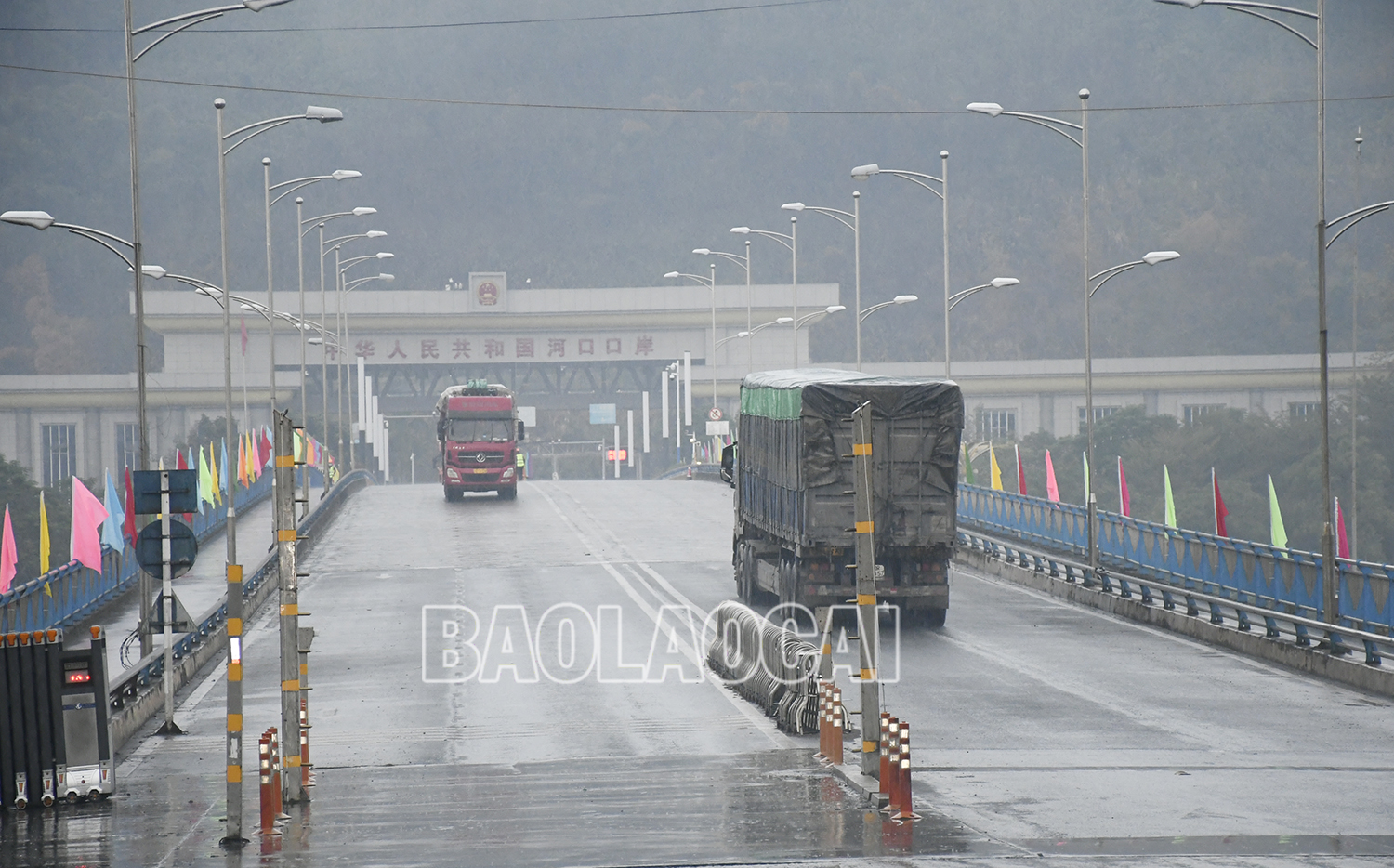 7 giờ sáng, ngày đầu tiên của năm 2024, Cửa khẩu Quốc tế đường bộ số 2 Kim Thành (Cửa khẩu Kim Thành) đã tấp nập phương tiện xuất - nhập khẩu hàng hóa.