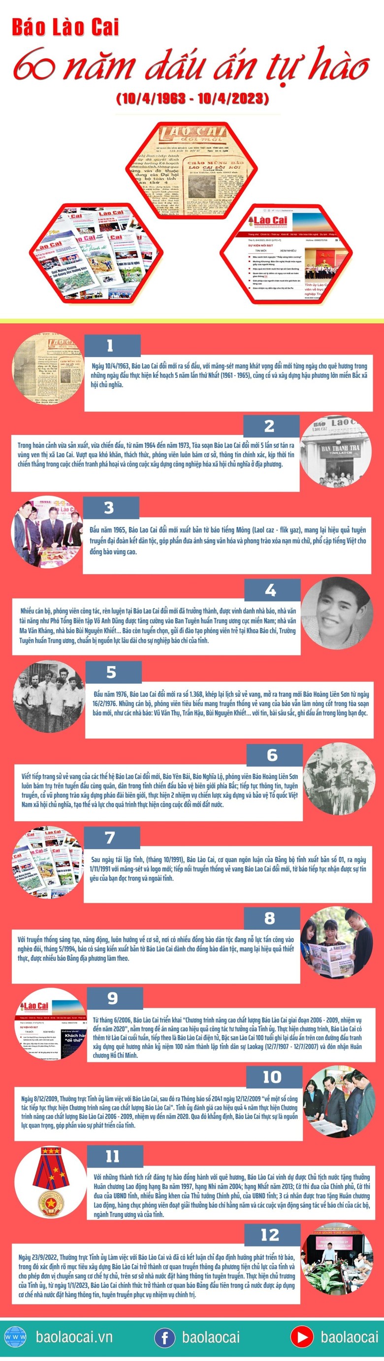 Cách đây 60 năm, ngày 10/4/1963, Báo Lao Cai đổi mới xuất bản số đầu, đánh dấu sự ra đời của Báo Lào Cai hôm nay. Trong suốt chặng đường xây dựng và phát triển, dù trong mọi hoàn cảnh lịch sử, Báo Lào Cai luôn hoàn thành sứ mệnh vẻ vang, là cơ quan ngôn luận, tiếng nói của Đảng bộ, chính quyền và nhân dân các dân tộc tỉnh Lào Cai.