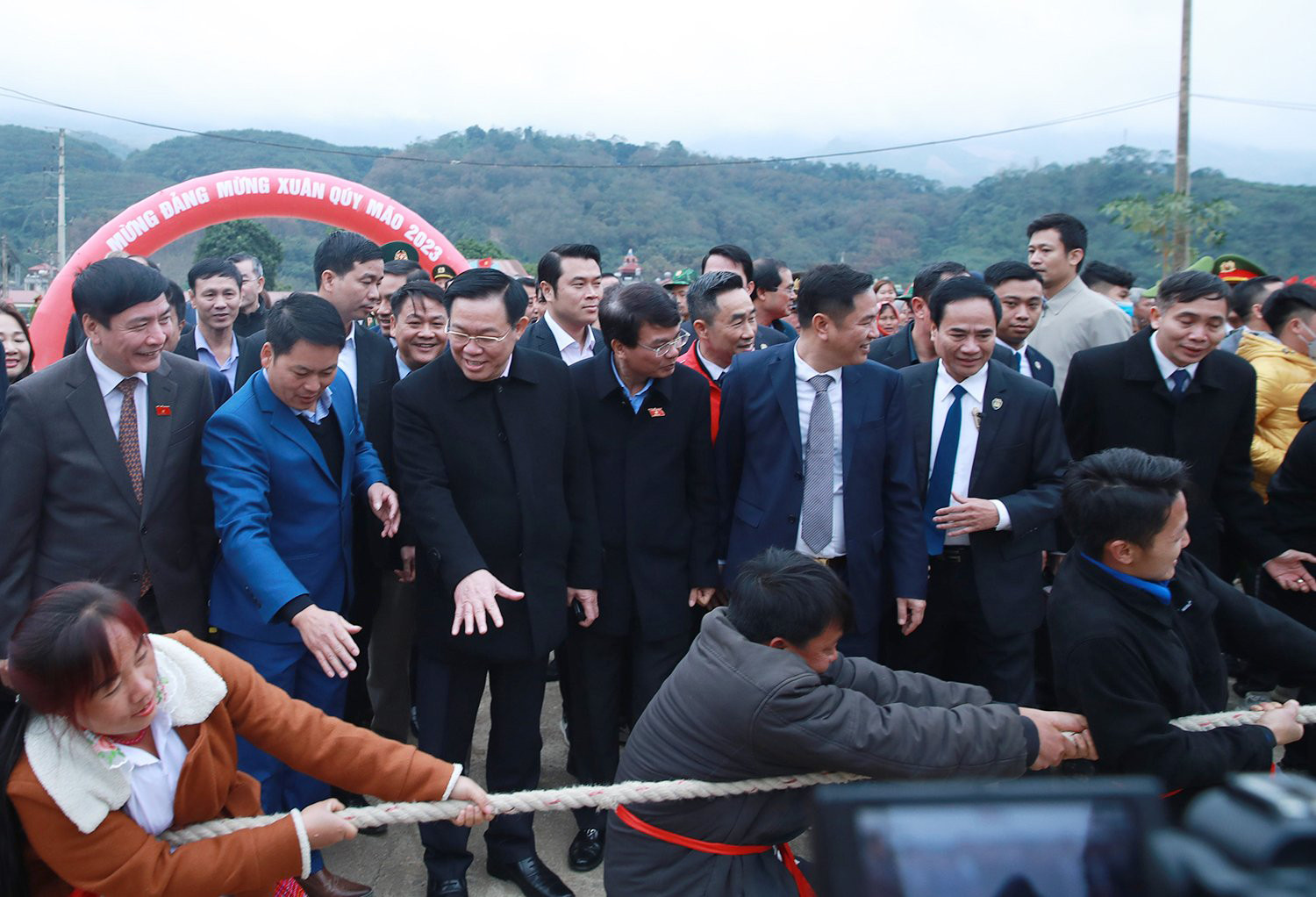 Sáng 16/1, tiếp tục chuyến công tác, đồng chí Vương Đình Huệ, Ủy viên Bộ Chính trị, Chủ tịch Quốc hội và Đoàn công tác của Quốc hội đã tới dự Hội chợ “Tết nhân ái” xuân Quý Mão 2023 do Hội Chữ thập đỏ tỉnh Lào Cai phối hợp với UBND huyện Bát Xát tổ chức tại xã Trịnh Tường, huyện Bát Xát.