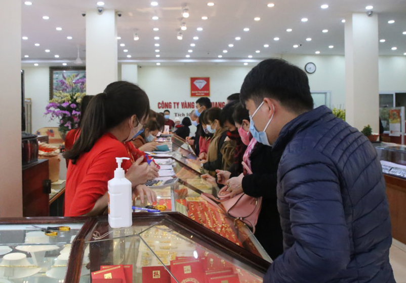 Ngày vía thần Tài năm 2021 diễn ra giữa tình hình dịch bệnh phức tạp, không khí ở các cửa hàng vàng tại Lào Cai nhộn nhịp từ sáng sớm, nên các cửa hàng vàng đều sẵn sàng các biện pháp phòng dịch, còn người mua cũng không quên đảm bảo an toàn cho chính mình.