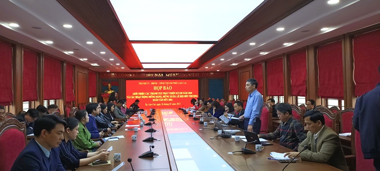 Chiều 26/1, thành phố Lào Cai tổ chức họp báo thông tin về các thành tựu phát triển kinh tế - xã hội năm 2020, nhiệm vụ năm 2021 và các hoạt động mừng Đảng, mừng xuân Tân Sửu 2021.