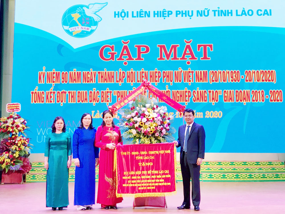 Sáng 20/10, Hội Liên hiệp Phụ nữ Việt Nam tỉnh Lào Cai tổ chức gặp mặt Kỷ niệm 90 năm ngày thành lập Hội Liên hiệp Phụ nữ Việt Nam (20/10/1930 – 20/10/2020) và tổng kết đợt thi đua đặc biệt “Phụ nữ Lào Cai khởi nghiệp sáng tạo” giai đoạn 2018 - 2020.