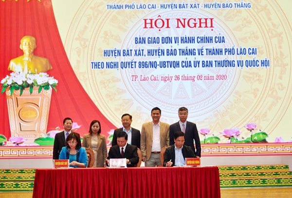 Ngày 26/2, tại Trung tâm Hội nghị thành phố, thành phố Lào Cai và các huyện: Bảo Thắng, Bát Xát tổ chức ký bàn giao đơn vị hành chính.