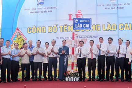 Sáng 18/4, tại thành phố Thủ Dầu Một (tỉnh Bình Dương) đã long trọng tổ chức Lễ công bố tên đường Lào Cai tại trung tâm thành phố Thủ Dầu Một.