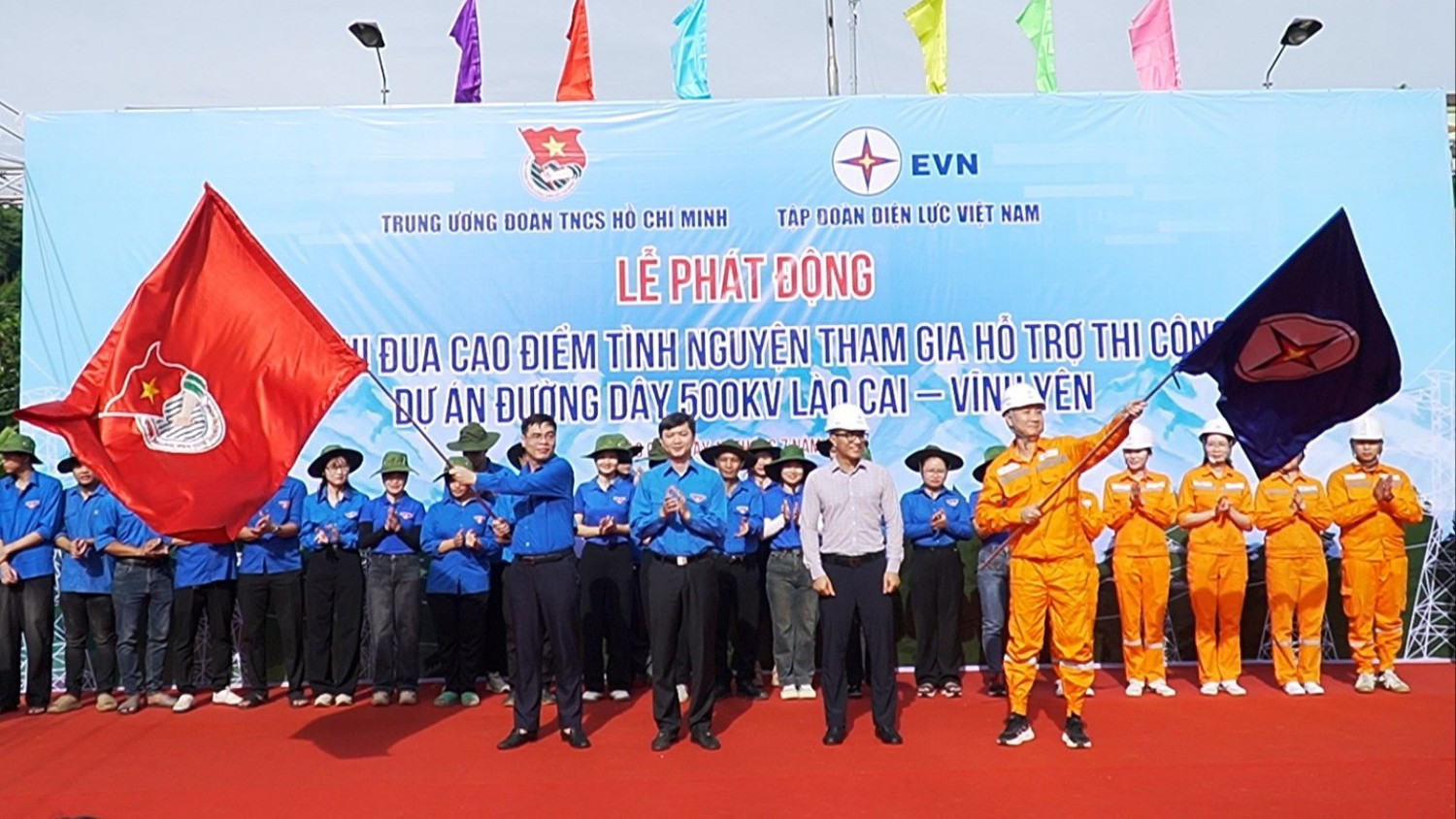 Sáng 10/7, tại thôn Xả Hồ, xã Xuân Quang, tỉnh Lào Cai, Trung ương Đoàn TNCS Hồ Chí Minh phối hợp với Tập đoàn Điện lực Việt Nam tổ chức Lễ phát động đợt thi đua cao điểm tình nguyện tham gia hỗ trợ thi công Dự án đường dây 500kV Lào Cai – Vĩnh Yên.