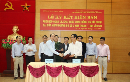 Chiều 16/3, Sở Thông tin - Truyền thông và Công ty dịch vụ Mobifone khu vực 4, Chi nhánh Tổng Công ty Viễn thông Mobifone tổ chức lễ ký kết biên bản thống nhất quản lý, khai thác cụm thông tin đối ngoại tại Cửa khẩu đường bộ số 2 Kim Thành, tỉnh Lào Cai.