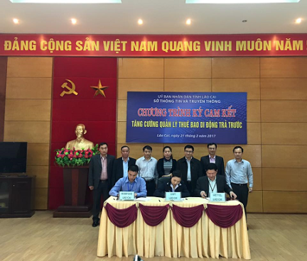 Ngày 21/02, Trung tâm kinh doanh - VNPT Lào Cai, Viettel Lào Cai và Mobifone Lào Cai đã cùng nhau ký cam kết về tăng cường quản lý thuê bao di động trả trước trước sự chứng kiến của Sở Thông tin và Truyền thông.