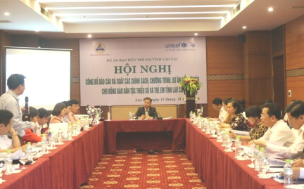 Ngày 15/11, UBND tỉnh Lào Cai đã phối hợp với Quỹ Nhi đồng Liên hợp quốc (UNICEF) tổ chức hội nghị công bố báo cáo rà soát các chương trình, chính sách, dự án giảm nghèo cho đồng bào dân tộc thiểu số và trẻ em tỉnh Lào Cai. Đồng chí Đặng Xuân Thanh – Phó Chủ tịch UBND tỉnh, Trưởng Ban dự án Bạn hữu trẻ em tỉnh chủ trì hội nghị.