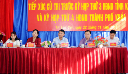Sáng 22/11, tại Nhà văn hóa xã Hợp Thành, Tổ đại biểu HĐND tỉnh khóa XV bầu tại thành phố Lào Cai đã tiếp xúc cử tri các xã, phường phía Nam thành phố.