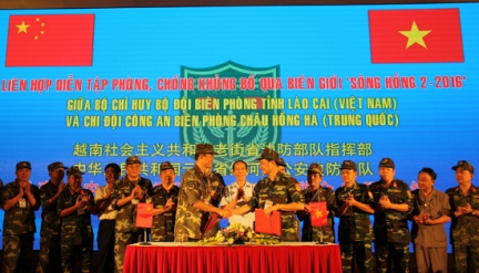 Sáng nay (20/9), Bộ Chỉ huy Bộ đội Biên phòng tỉnh Lào Cai (Việt Nam) và Chi đội Công an Biên phòng châu Hồng Hà, tỉnh Vân Nam (Trung Quốc) tổ chức diễn tập liên hợp phòng, chống khủng bố qua biên giới “Sông Hồng 2 - 2016”.