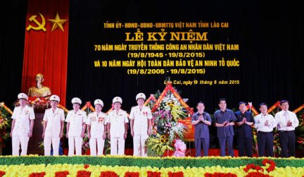 Trong không khí tưng bừng kỷ niệm 70 năm Cách mạng tháng Tám và Quốc khánh 2/9, sáng 19/8, tại Trung tâm Hội nghị tỉnh, Tỉnh ủy, HĐND, UBND, Ủy ban Mặt trận Tổ quốc Việt Nam tỉnh Lào Cai tổ chức trọng thể Lễ kỷ niệm 70 năm Ngày truyền thống Công an nhân dân (CAND) Việt Nam (19/8/1945- 19/8/2015), 10 năm Ngày hội Toàn dân bảo vệ an ninh Tổ quốc (2005 - 2015).