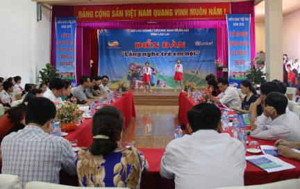 62 em học sinh đại diện cho trên 200.000 trẻ em tỉnh Lào Cai đã có dịp bày tỏ suy nghĩ, nguyện vọng của mình tại Diễn đàn “Lắng nghe trẻ em nói” do Sở Lao động, Thương binh và Xã hội tỉnh phối hợp với Tổ chức UNICEF tại Việt Nam tổ chức vào ngày 18 – 19/6.