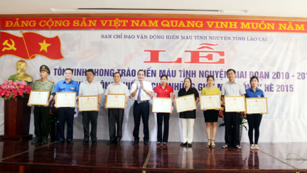 Sáng 31/5, Ban Chỉ đạo Vận động hiến máu tình nguyện tỉnh Lào Cai tổ chức Lễ tôn vinh phong trào hiến máu tình nguyện giai đoạn 2010 - 2015 và phát động Chiến dịch “Những giọt máu hồng” hè 2015.