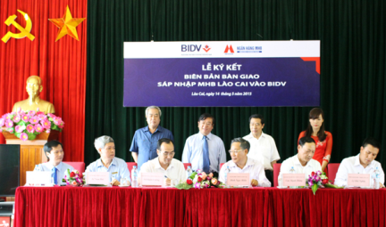 Sáng ngày 14/5, tại Ngân hàng Nhà nước tỉnh đã diễn ra Lễ ký kết biên bản bàn giao, sáp nhập Ngân hàng TMCP Phát triển nhà Đồng bằng sông Cửu Long Chi nhánh Lào Cai (MHB Lào Cai) vào Ngân hàng TMCP Đầu tư và Phát triển Việt Nam (BIDV).