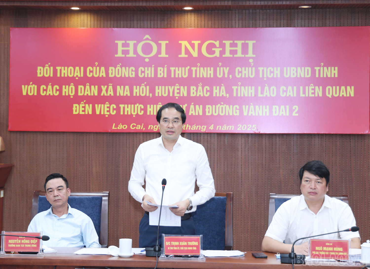 Sáng 18/4, tại trụ sở Ban tiếp công dân tỉnh, đồng chí Trịnh Xuân Trường, Bí thư Tỉnh ủy, Chủ tịch UBND tỉnh đã đối thoại với các hộ dân xã Na Hối, huyện Bắc Hà liên quan đến việc thực hiện Dự án đường vành đai 2.