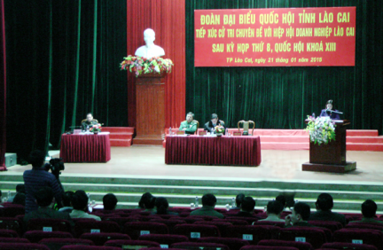 Ngày 21/1, tại Hội trường Trung tâm Văn hóa thành phố, Đoàn đại biểu Quốc hội tỉnh tổ chức tiếp xúc cử tri chuyên đề với Hiệp hội Doanh nghiệp tỉnh.