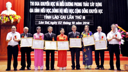 Sáng 2/10, Hội Khuyến học tỉnh tổ chức Đại hội thi đua khuyến học và biểu dương phong trào xây dựng gia đình hiếu học, dòng họ hiếu học, cộng đồng khuyến học tỉnh Lào Cai lần thứ III năm 2014.