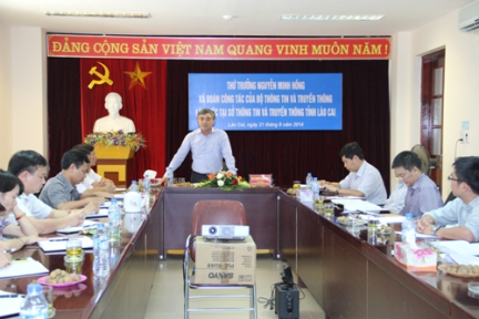 Chiều ngày 21/8, Thứ trưởng Bộ Thông tin và Truyền thông Nguyễn Minh Hồng đã có buổi làm việc với Sở Thông tin và Truyền thông tỉnh Lào Cai về công tác quản lý Nhà nước về lĩnh vực thông tin và truyền thông tại địa phương.