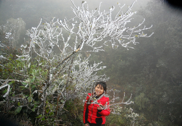 Bất chấp thời tiết giá lạnh, nhiều du khách đã có mặt trên đỉnh đèo Ô Quý Hồ để ngắm băng tuyết và ghi lại khoảnh khắc đẹp.