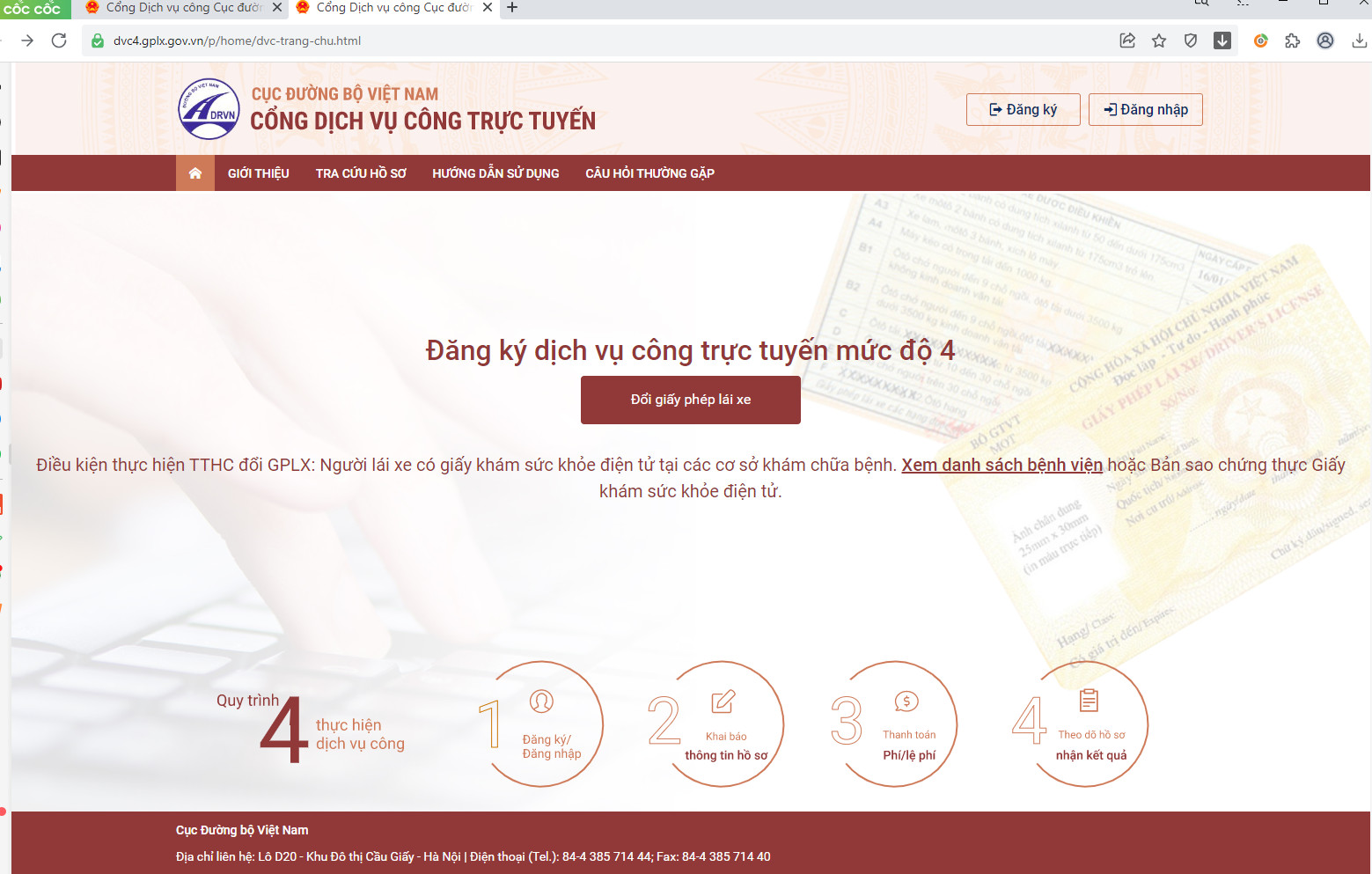 Cục Đường bộ Việt Nam vừa có văn bản gửi UBND các tỉnh, thành phố về việc triển khai dịch vụ công trực tuyến mức độ 4 (phạm vi toàn quốc) Đổi Giấy phép lái xe (GPLX) trên Cổng dịch vụ công quốc gia.