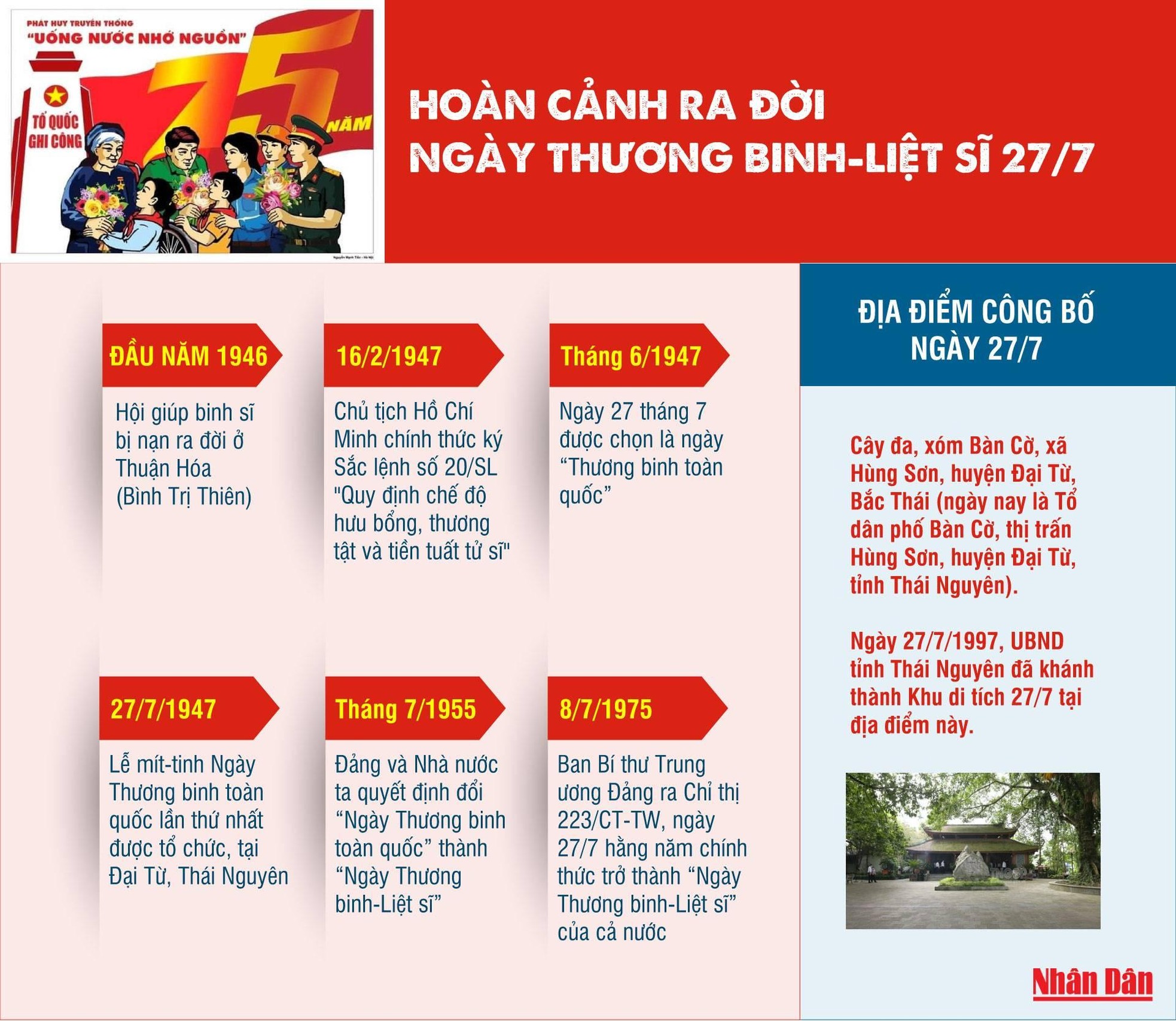 Ngày 16/2/1947, Chủ tịch Hồ Chí Minh đã chính thức ký Sắc lệnh số 20/SL "Quy định chế độ hưu bổng, thương tật và tiền tuất tử sĩ". Đây là văn bản pháp quy đầu tiên khẳng định vị trí quan trọng của công tác thương binh, liệt sĩ và sự quan tâm của Đảng, Nhà nước đến thương binh, bệnh binh và gia đình liệt sĩ.
