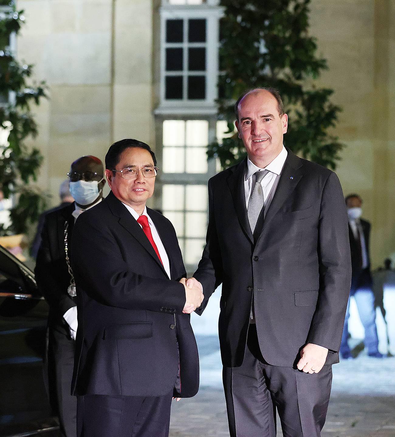 Chiều tối ngày 03/11 (theo giờ địa phương), tại Điện Matignon, Thủ tướng Chính phủ Phạm Minh Chính đã hội đàm với Thủ tướng Pháp Jean Castex, chứng kiến Lễ ký kết một số văn bản, thỏa thuận hợp tác giữa hai nước và tham dự tiệc chiêu đãi chính thức của Thủ tướng Chính phủ Pháp chào mừng Thủ tướng Chính phủ Việt Nam.