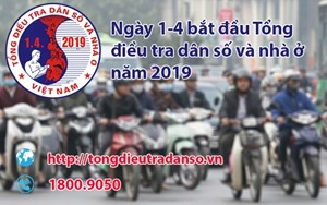 Từ 0h00 hôm nay (1/4), cuộc Tổng điều tra về dân số và nhà ở năm 2019 trên quy mô toàn quốc chính thức bắt đầu, với sự tham gia của hơn 122.000 điều tra viên. Thông tin chung về dân số, tình trạng di cư, hôn nhân, mức độ sinh - chết và phát triển dân số, tình trạng lao động, việc làm, tình trạng về nhà ở và nhiều nội dung thông tin khác sẽ được Tổng cục Thống kê tiến hành thu thập.