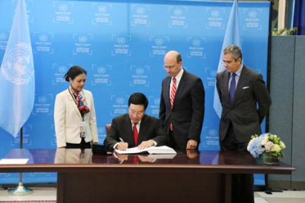 Ngày 22/9 tại trụ sở LHQ, thay mặt Nhà nước CHXHCN Việt Nam, Phó Thủ tướng, Bộ trưởng Ngoại giao Phạm Bình Minh đã ký Hiệp ước Cấm vũ khí hạt nhân.