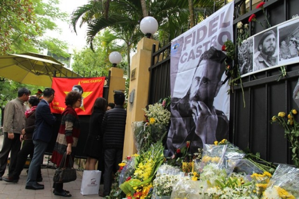 Trong những ngày này, cùng với nhân dân Cuba và nhân dân thế giới, đông đảo các đoàn đại biểu các bộ, ngành Trung ương, địa phương và nhiều người dân Việt Nam đã bày tỏ niềm tiếc thương đối với lãnh tụ cách mạng của nhân dân Cuba Fidel Castro.