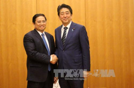 Trong buổi tiếp đồng chí Phạm Minh Chính, Thủ tướng Nhật Bản Shizo Abe khẳng định Nhật Bản sẽ tiếp tục dành sự quan tâm và ưu tiên cao cho quan hệ hợp tác toàn diện với Việt Nam; mong muốn tăng cường giao lưu và hợp tác giữa Đảng Dân chủ tự do Nhật Bản và Đảng Cộng sản Việt Nam.