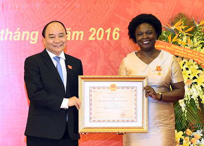 Chiều 25/7, Thủ tướng Nguyễn Xuân Phúc đã tới dự lễ trao Huân chương Hữu nghị cho bà Victoria Kwakwa, Phó Chủ tịch Ngân hàng Thế giới (WB) khu vực Đông Á Thái Bình Dương (nguyên Giám đốc Quốc gia của WB tại Việt Nam) tại trụ sở Ngân hàng Nhà nước và chứng kiến lễ ký kết một số hiệp định hợp tác giữa WB và Ngân hàng Nhà nước.