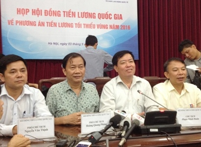 Hơn 12h30 trưa 3/9, Hội đồng Tiền lương Quốc gia đã thống nhất mức đề xuất tăng lương tối thiểu vùng năm 2016 là 12,4%.