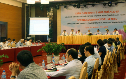 Sáng 21/4, Diễn đàn Kinh tế Mùa xuân 2015 đã khai mạc tại TP Vinh, Nghệ An với chủ đề "Cải thiện môi trường kinh doanh: Biến lời nói thành hành động".
