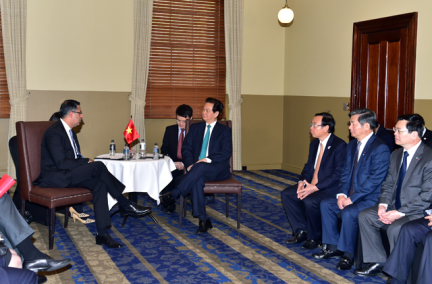 Chiều 19/3, tại Phủ Chủ tịch, Chủ tịch nước Trương Tấn Sang đã tiếp thân mật Chủ tịch Quốc hội Hàn Quốc Chung Ui-Hwa (Châng Ưi Hoa) đang có chuyến thăm hữu nghị chính thức nước ta.