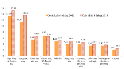 Tính từ đầu năm đến hết tháng 8/2014, tổng kim ngạch xuất nhập khẩu hàng hóa cả nước đạt gần 191,4 tỷ USD, tăng 12,5% so với cùng kỳ năm 2013, tương ứng tăng 21,31 tỷ USD.