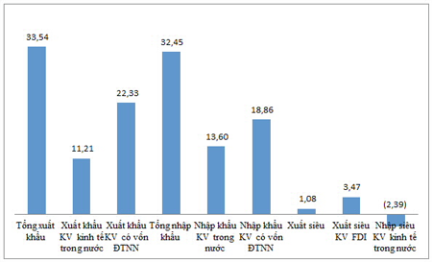 Theo Bộ Công Thương, tổng kim ngạch xuất khẩu (KNXK) quý I năm 2014 ước đạt 33,35 tỉ USD, tăng 14,1% so với cùng kỳ năm 2013 (tương đương với tăng 4,12 tỷ USD).