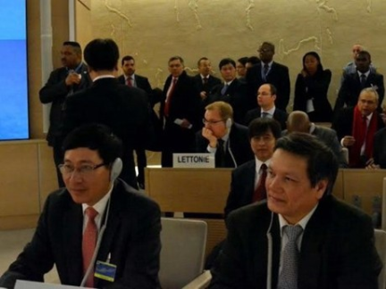 Phó Thủ tướng, Bộ trưởng Ngoại giao Phạm Bình Minh khẳng định Việt Nam sẵn sàng đóng góp vào các nỗ lực và công việc chung của Hội đồng Nhân quyền Liên Hợp Quốc vì các quyền, tự do và các giá trị nhân bản của nhân loại.