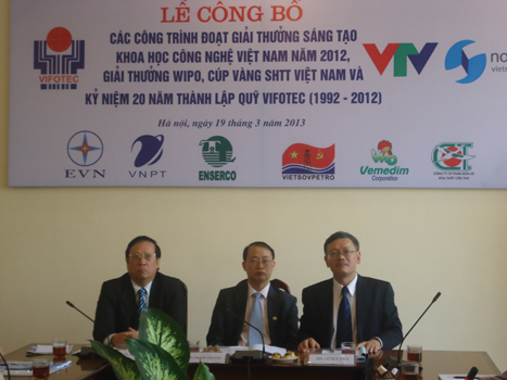 Chiều 19/3 tại Hà Nội, Quỹ Hỗ trợ sáng tạo kỹ thuật Việt Nam (VIFOTEC) thuộc Liên hiệp các Hội Khoa học kỹ thuật Việt Nam tổ chức họp báo công bố các công trình đoạt Giải thưởng sáng tạo Khoa học Công nghệ Việt Nam, giải thưởng của Tổ chức sở hữu trí tuệ Thế giới (WIPO) và Lễ kỷ niệm 20 năm thành lập Quỹ Vifotec (1992 - 2012).